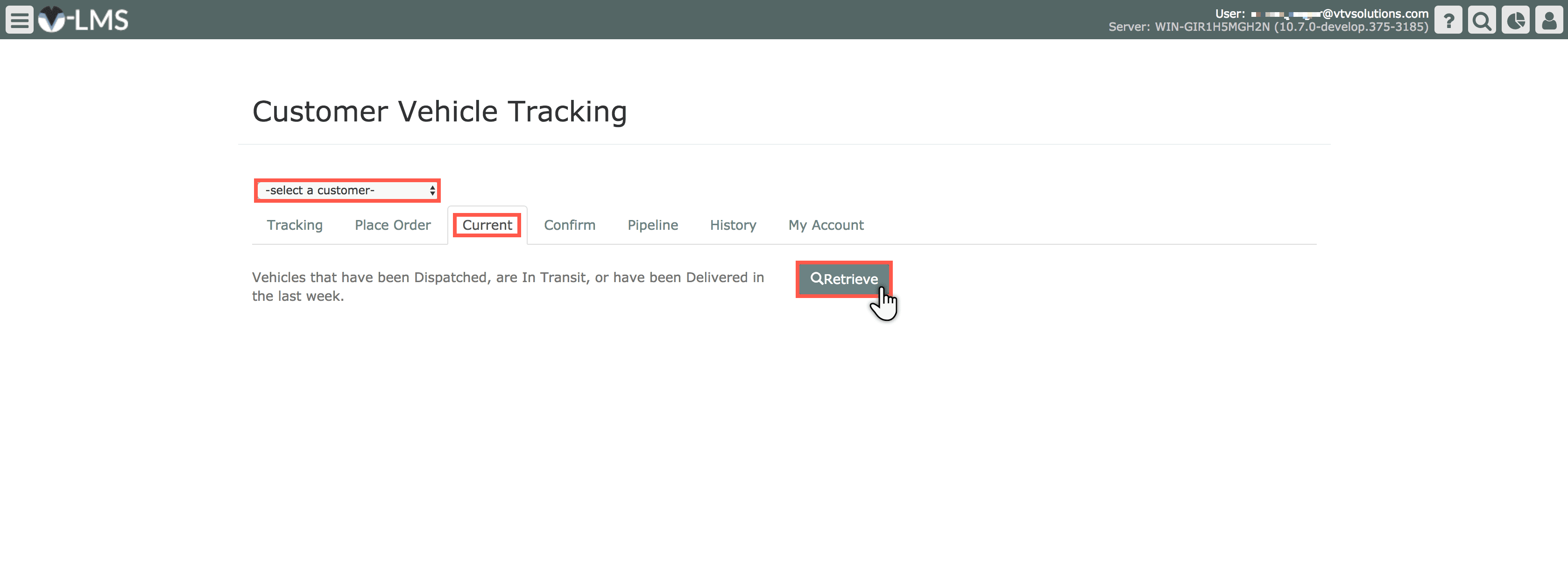 You can view vehicles that have been dispatched, are in transit or have been delivered in the last week