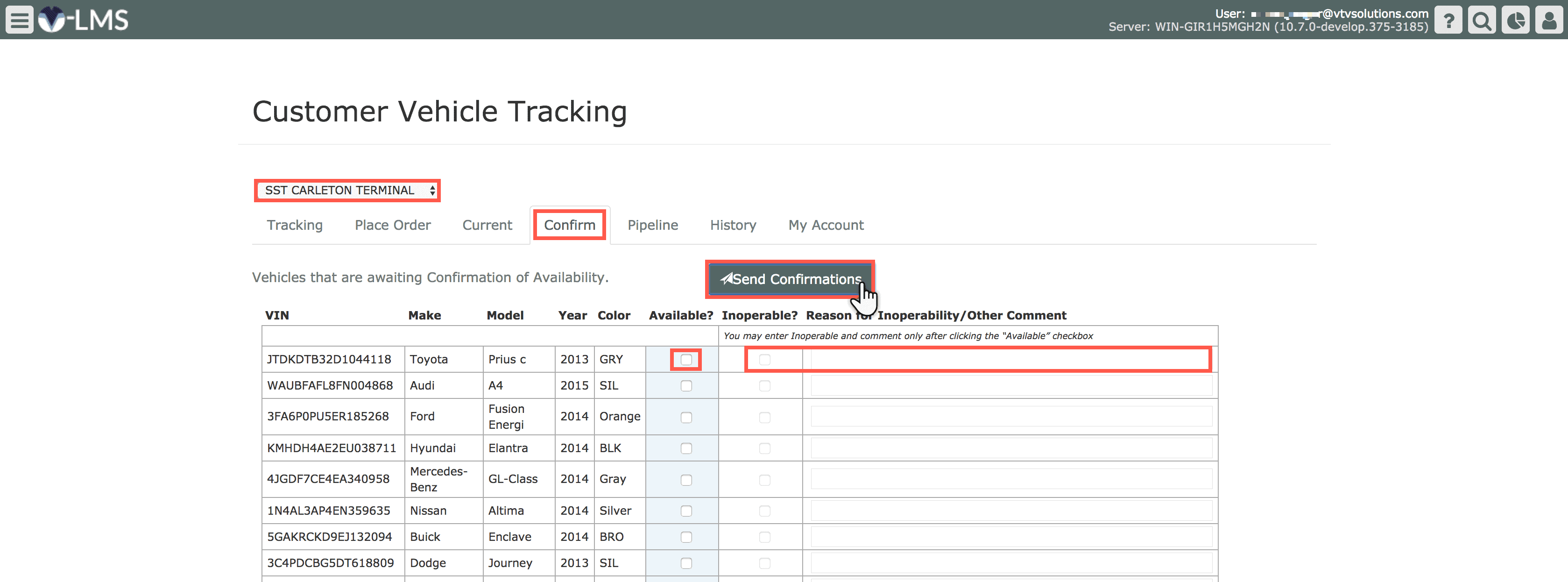 5. After all vehicles are marked properly, click Send Confirmations again.