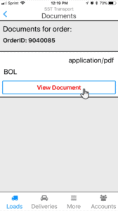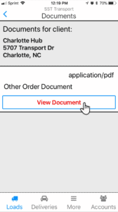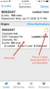 1. If there are documents associated with a client there will be a large document icon on the load details screen.
