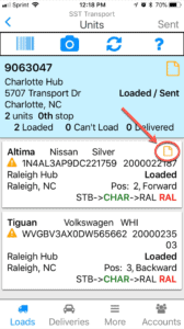 If a unit has a document associated with it, such as a BOL, Manifest or Release, a document icon will be visible on that