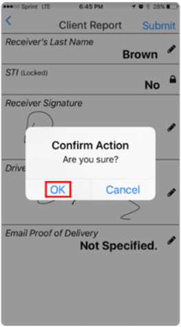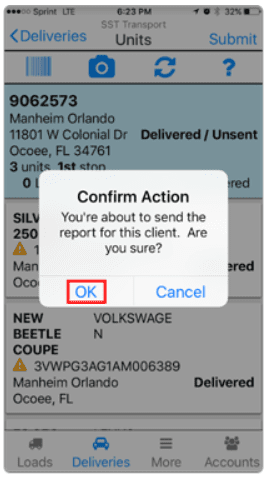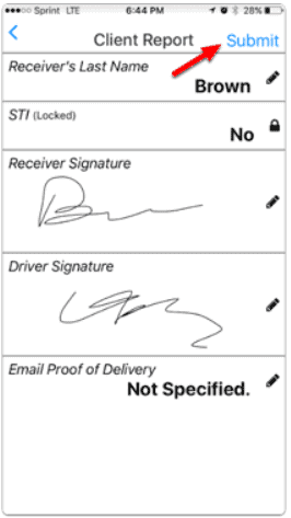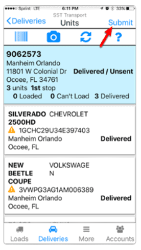 2. The load status should read Delivered/Unsent. Click Submit in the top-right corner.