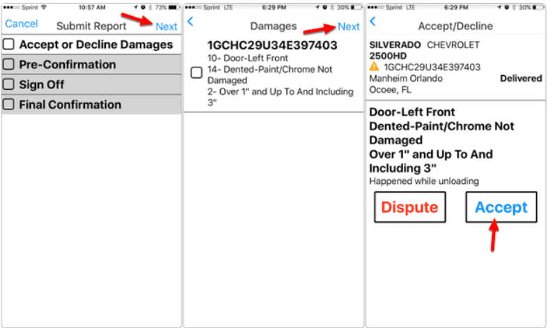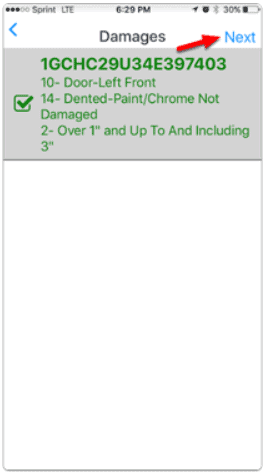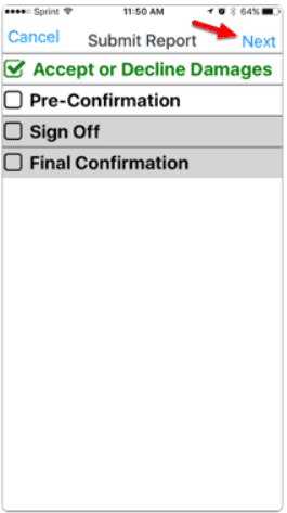 4. Once all damages are accepted and/or disputed click Next in the top-right corner