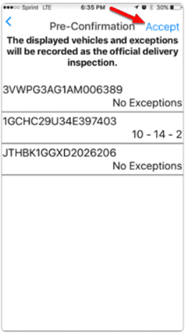 2. Review the vehicles and exceptions and click Accept in the top-right corner.